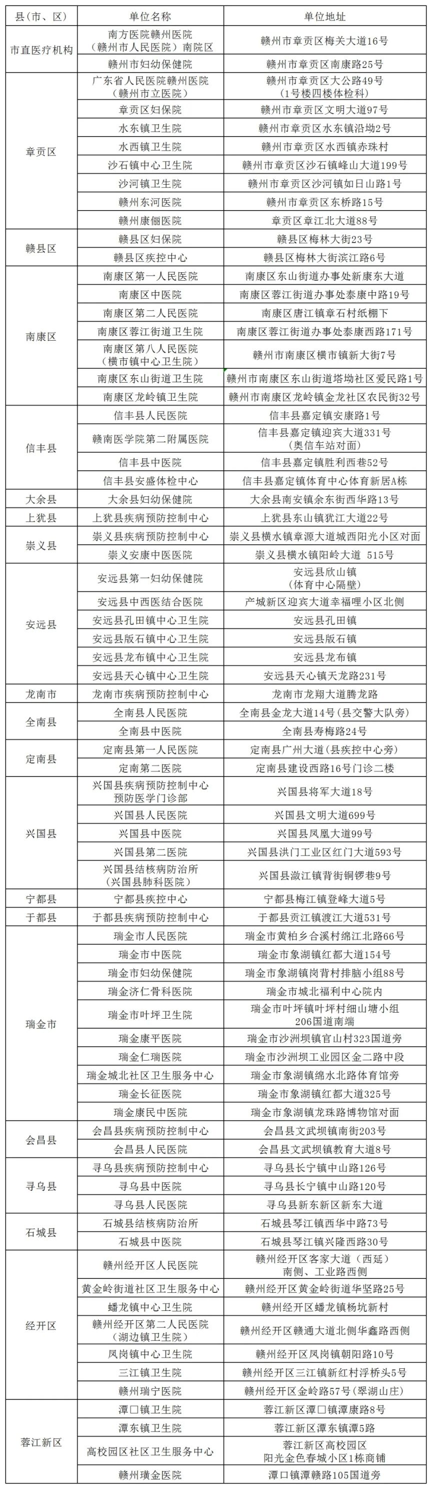 1. "赣州市疾病预防控制中心": - 地址:赣州市章贡区章江新区长征大道1号举报 -
