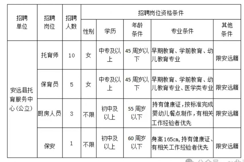 安远县卫生健康总院妇幼保健院区公开招聘托育服务中心工作人员公告