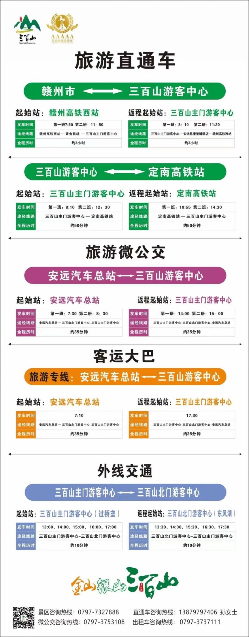 1. 交通: - 自驾:从赣州出发,沿赣南大道行驶约2小时可达三百山。 - 公共交通:从赣州汽车站乘坐前往安远县的班车,再转乘前往三百山的班车。