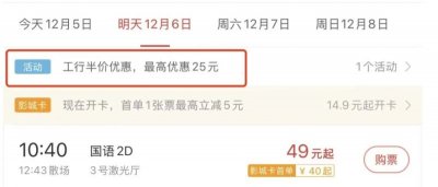 工享“观影有礼”工行半价优惠,最高优惠25元