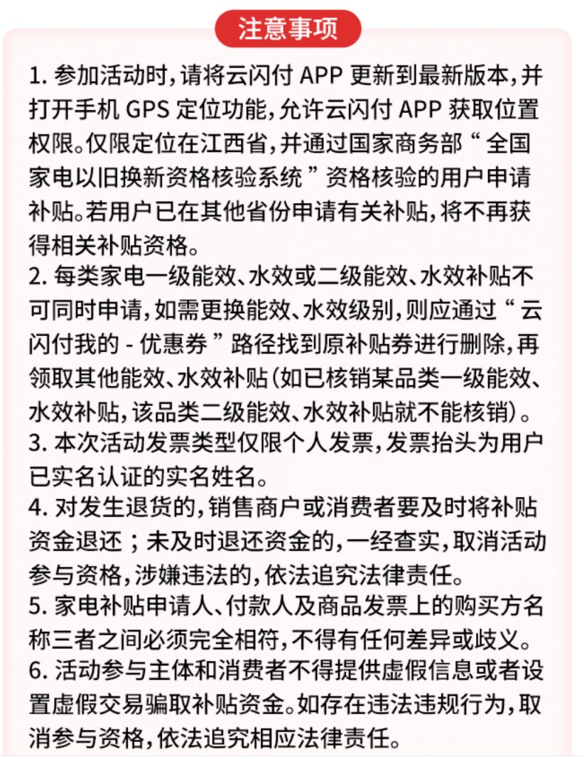 #### 补贴对象 - 江西省户籍居民。 - 在江西省内购买新家电的个人。