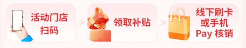 个人消费者前往参与活动门店,通过云闪付 APP 扫描“门店码”申领本次家电补贴券,领券成功后,通过云闪付 APP 绑定的 62 开头银行卡或手机Pay 在门店指定 POS 机刷卡或挥卡核销,即可立买立享支付立减政府补贴。