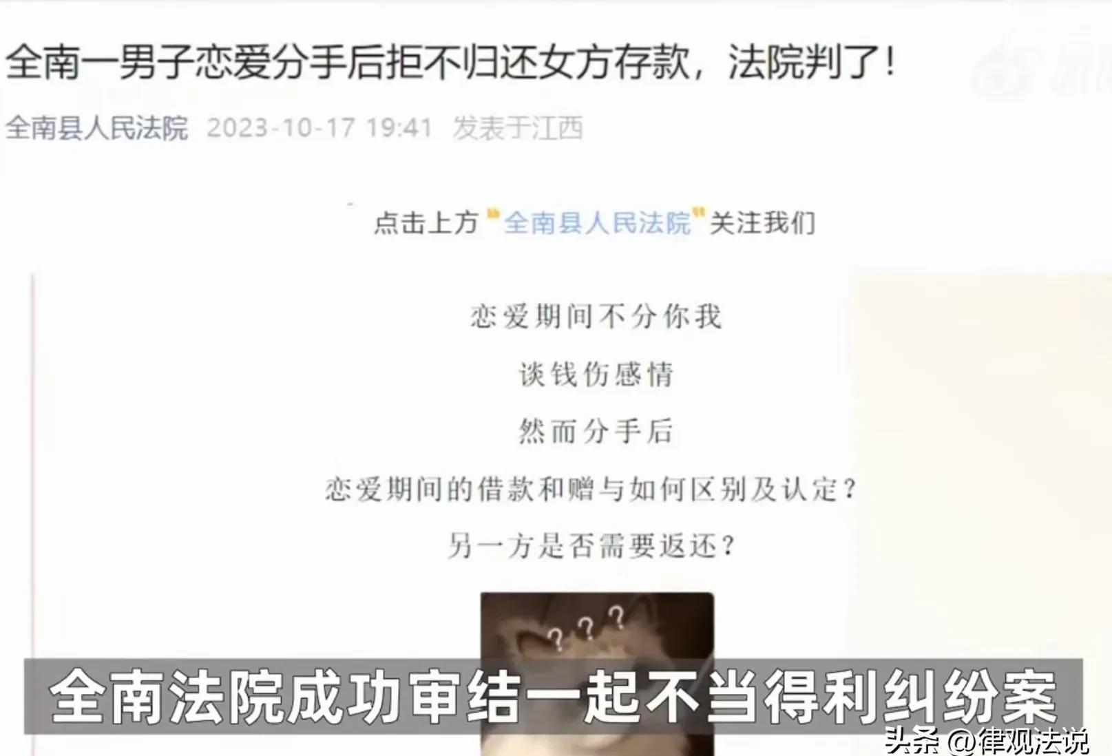 “不可思议!”江西赣州,一女子和一男子恋爱同居,男友要求女子将其收入转给自己保管,女子欣然答应,10个月后两人各奔东西,女子要求前男友返还自己的存款39180元,没想到却遭到男子拒绝:这些钱我家人已经花光了。